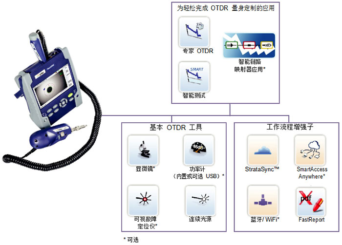 將所有基本光纖測試集成到一臺搭配可視故障定位儀(VFL)、光功率計(OPM)和p5000i顯微鏡選件的手持式設(shè)備中;借助智能鏈路映射(SLM)選件可簡化OTDR分析;可在現(xiàn)場輕松升級;可自動完成測試,并生成客觀的通過/失敗結(jié)果;借助強大的網(wǎng)絡(luò)連接選件可隨時隨地提高工作效率