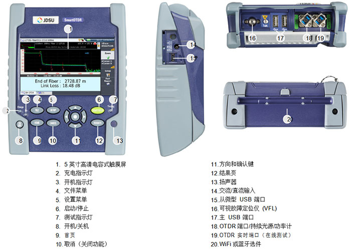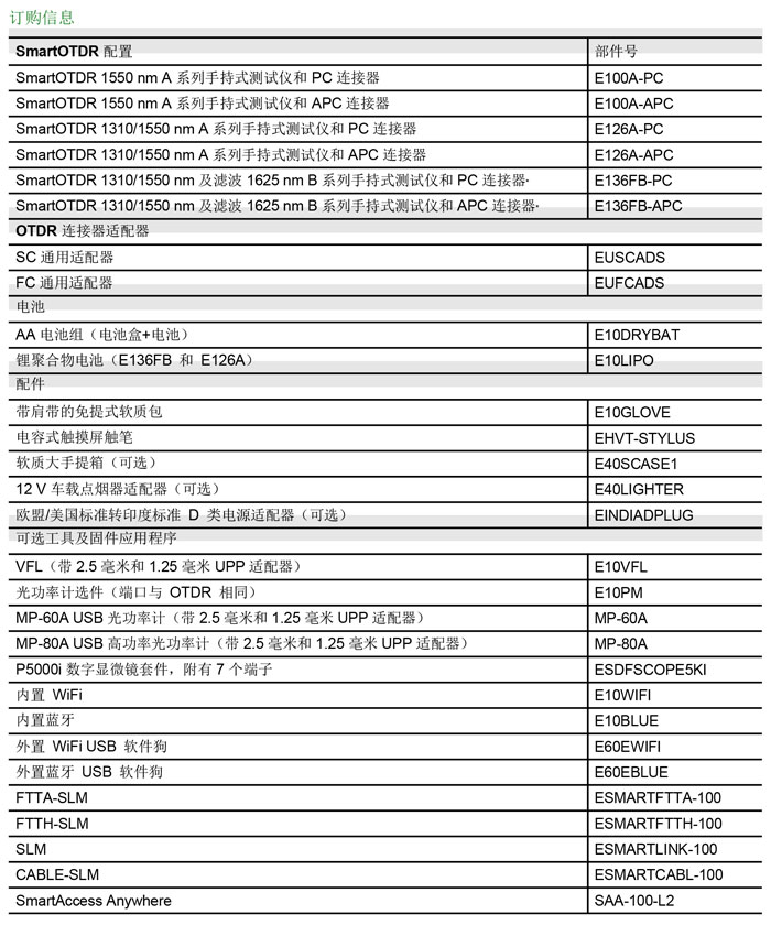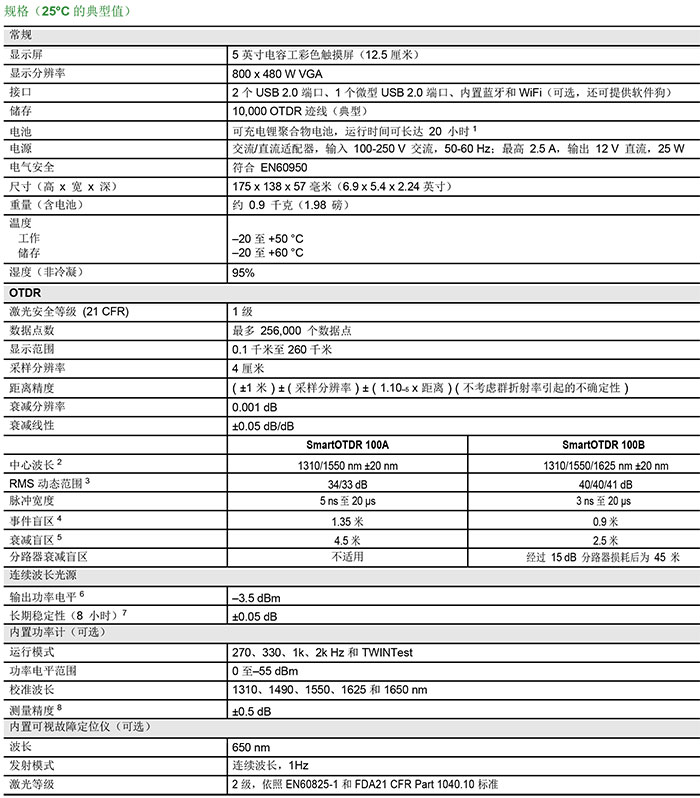 提供單波長/雙波長/三波長版本,分別具備1310、1550和在線1625 nm波長;輕巧、緊湊的免提式設(shè)計,搭載5英寸高清室外觸摸屏;集成式連續(xù)波長光源;PON優(yōu)化功能,可穿透測試1x128分路器;自動光纖檢查和宏彎探測通過/失敗分析軟件;通過USB、藍牙/WiFi選件實現(xiàn)3G/4G連接;電池續(xù)航時間長達一天